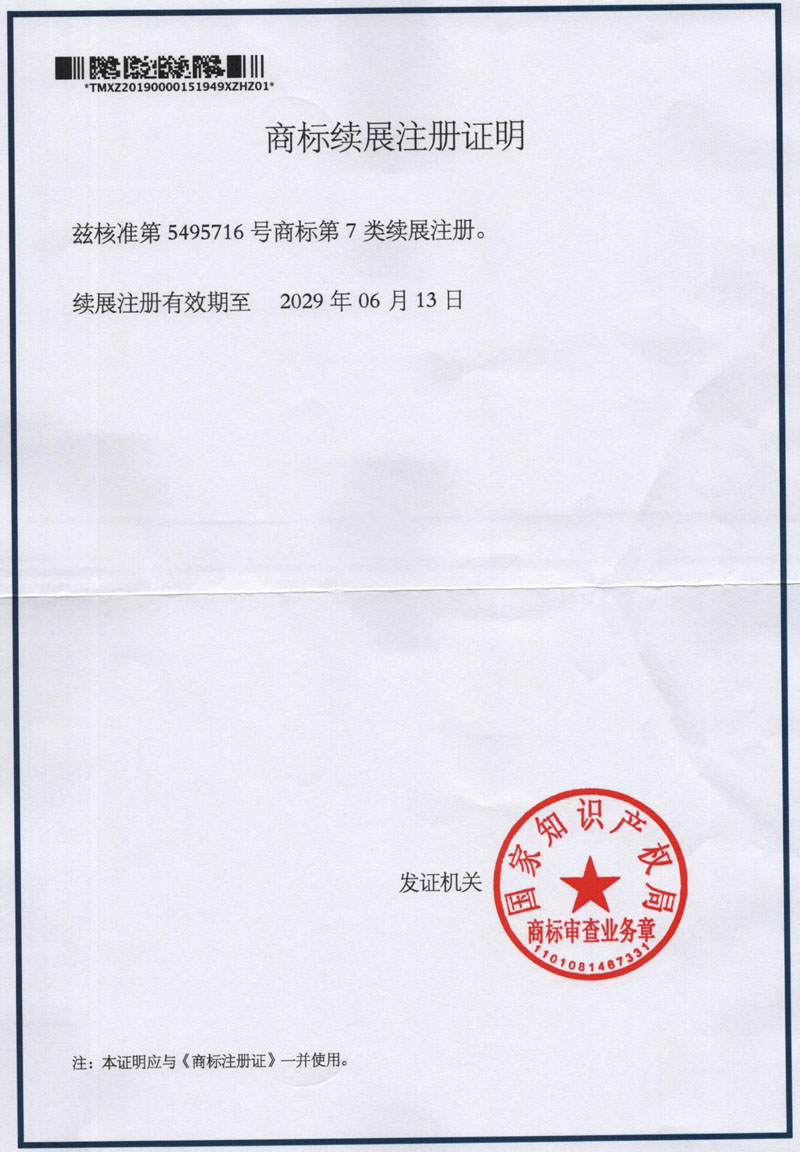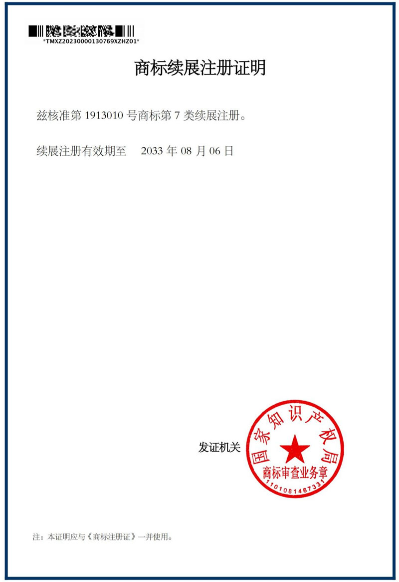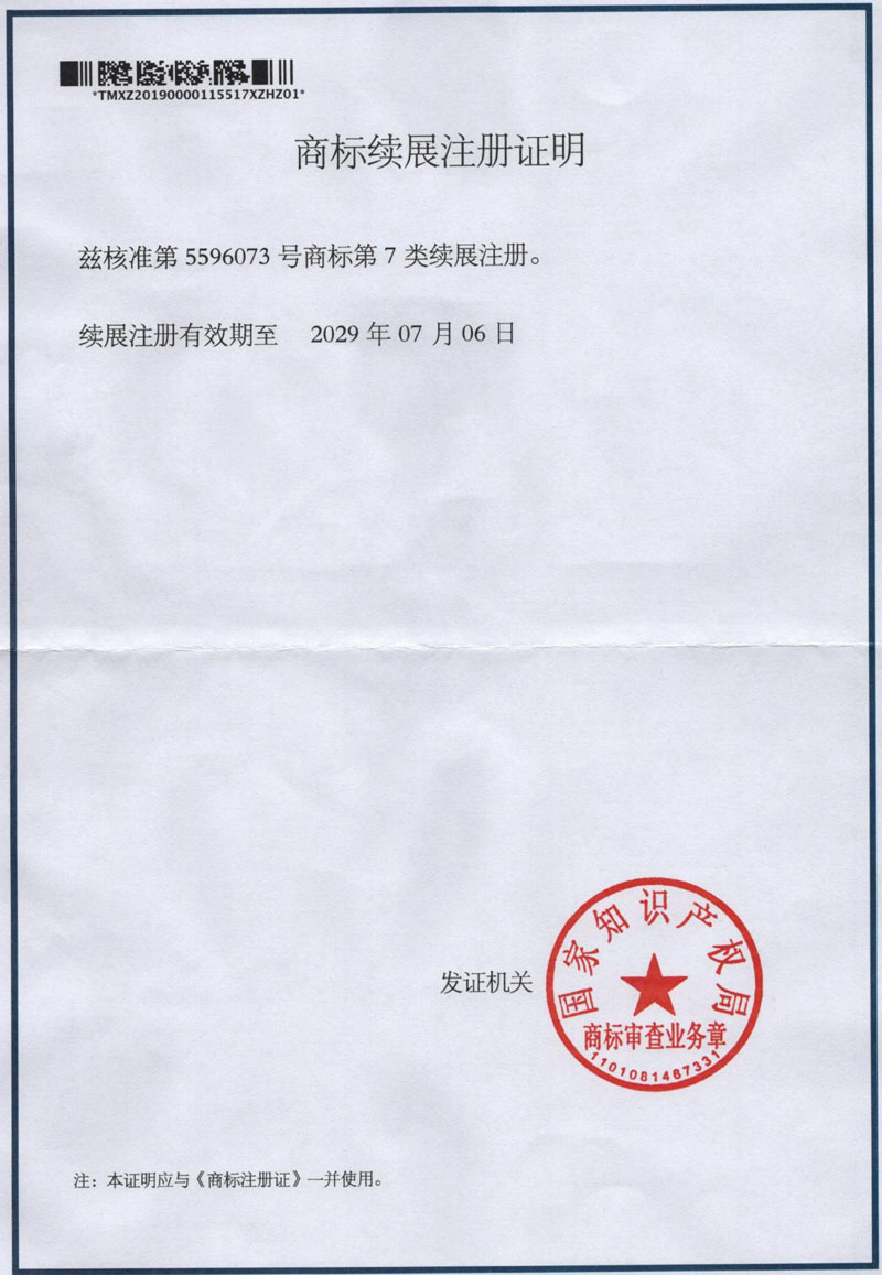 售后服务认证证书                                        商标注册证                            商标注册证
