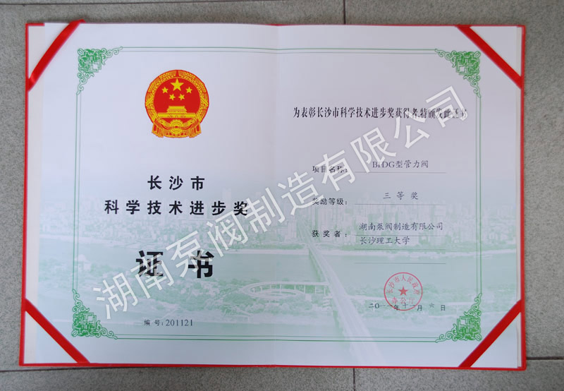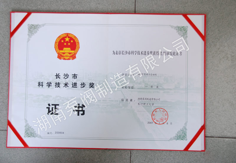 特种设备许可证证书                                 长沙市创新型单位                                 多功能水力阀市科技进步三等奖